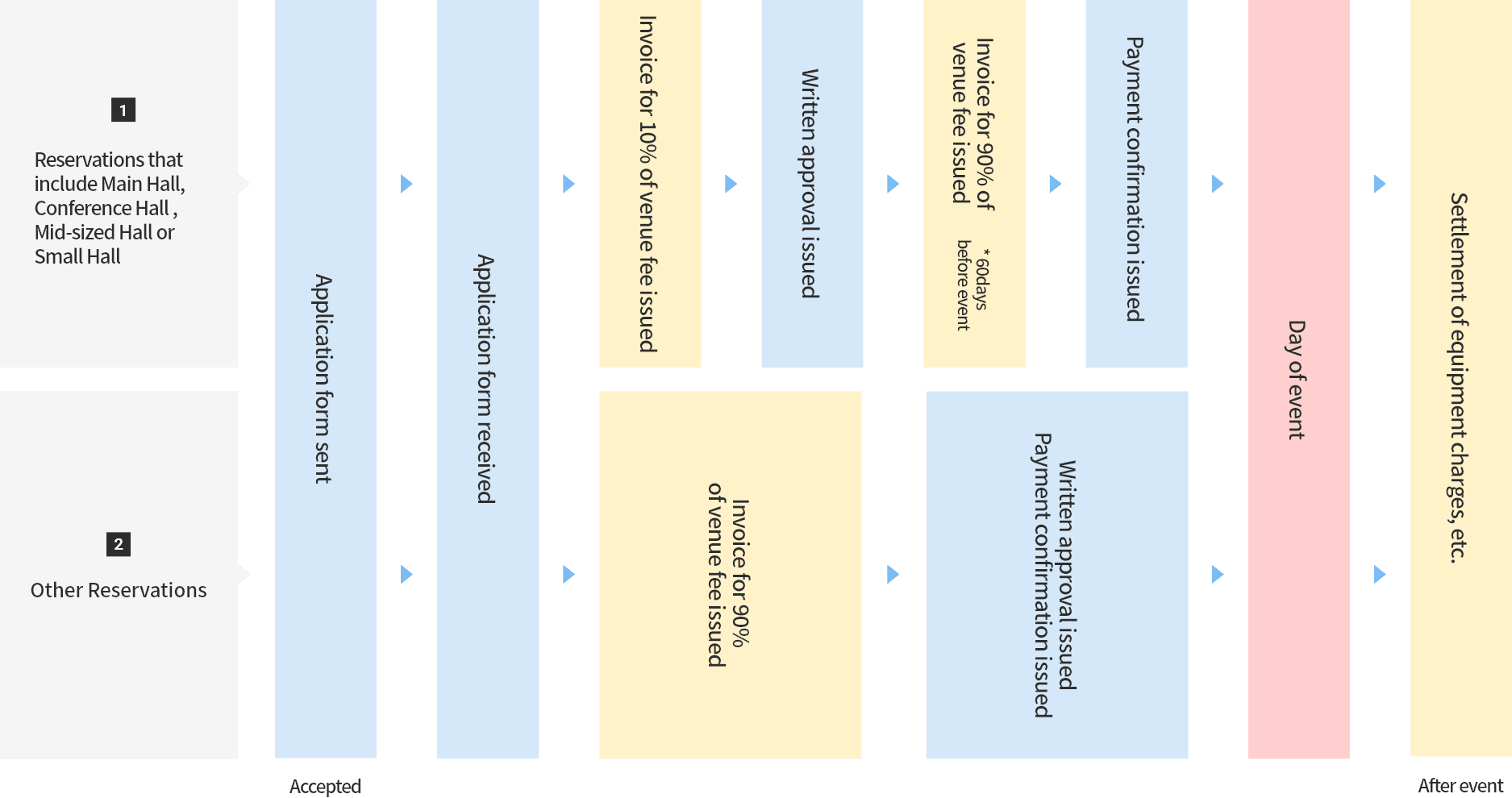 After you have sealed (signed) and returned the application form, you will be sent an invoice for the facility use fee (venue fee).