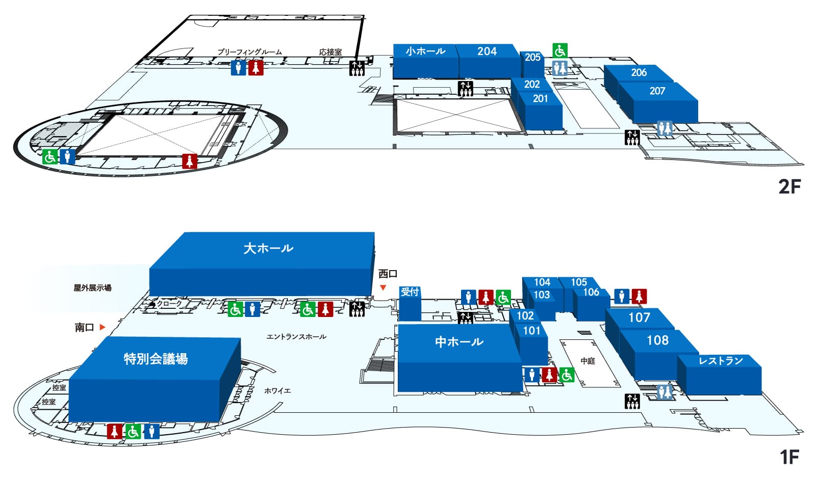 館内数か所に休憩スペースがございます。会議や展示会の合間にゆったりとお過ごしください。