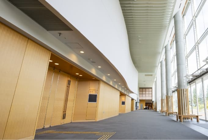 インテリジェント機能とハイグレード感にあふれた国際舞台をご提供いたします。 天井中央に据えた照明は、空から降る雪の様子をイメージし、北の街札幌を象徴的に表現しています。同時通訳ブース6室や傍聴席を装備した高級感あふれる会議場です。