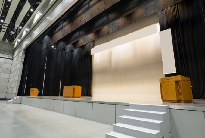 | ステージ | 間口:約10.5m〜約12.0m / 奥行:約2.8m〜約3.2m / ステージ高さ:0.3m |